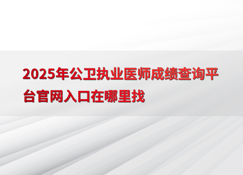 2025年公卫执业医师综合考试成绩预计在9月公布,考生可通过国家医学考试网(http://www.nmec.org.cn/)首页“成绩查询入口”进入系统。