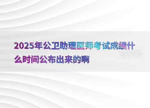 2025年公卫助理医师综合考试成绩预计在9月公布,参考近年时间规律,考后约1个月左右可查分。