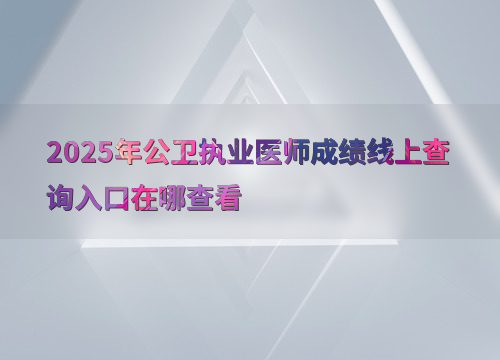 2025年公卫执业医师综合考试成绩预计在9月公布,考生可通过国家医学考试中心官方渠道查询。