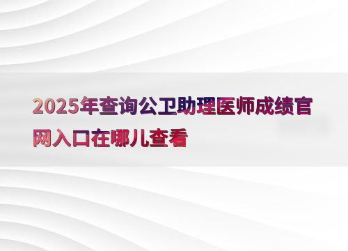 2025年公卫助理医师综合考试成绩预计在9月公布,考生可通过国家医学考试网(http://www.nmec.org.cn/)首页“成绩查询入口”进行查询。