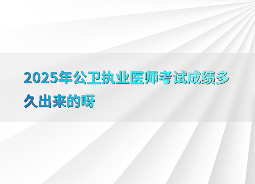 2025年公卫执业医师综合考试成绩预计在9月公布,参考近年时间规律(如2024年9月13日、2023年9月19日),考后约1个月左右可查。