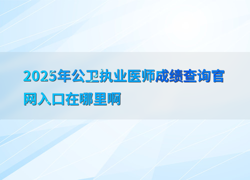 2025年公卫执业医师综合考试成绩已经于9月23日公布。考生可通过国家医学考试网(http://www.nmec.org.cn/)首页“成绩查询入口”进行查询。