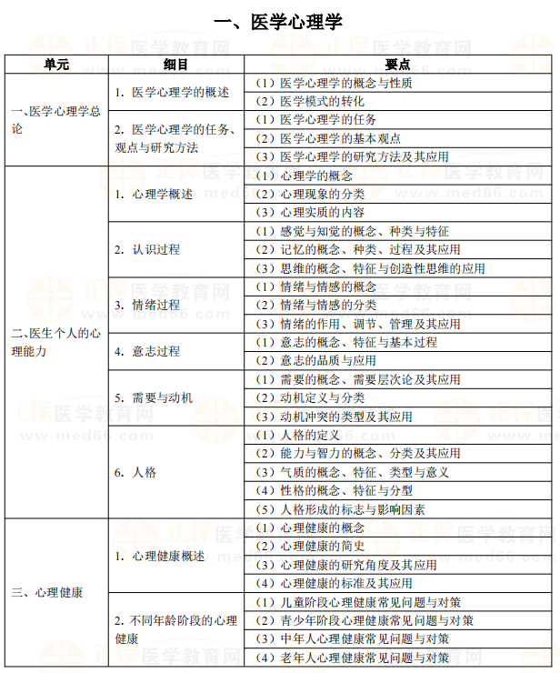 2025年公卫执业医师考试《医学心理学》考试大纲已经公布,经医学教育网专业师资团队校对,与2024年相比没有变动,各位考生可以安心开始复习!