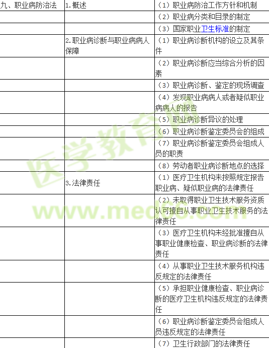 | 2018年公卫执业医师《卫生法规》考试大纲 | ||