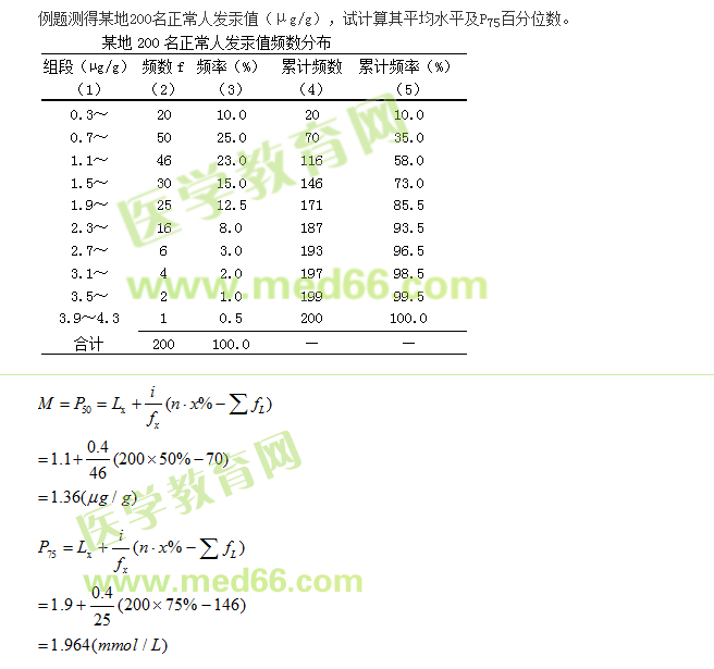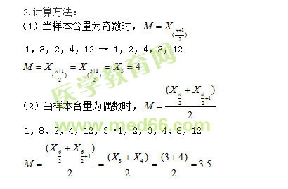 中位数(median)用M表示,是一组观察值按由小到大的顺序排列后,位于中间位置上的那个数值医学|教育网。