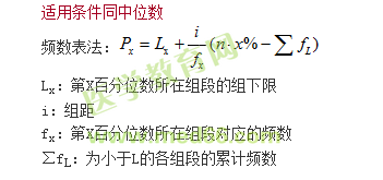 百分位数(percentile)用Px(第x百分位数)表示,也是一种位置指标,医学|教育网观察值按由小到大的顺序排列后,一个百分位数Px将全部变量值分为两部分,其中有x%的变量值比它小,(100——x)%变量值比它大。P50=M