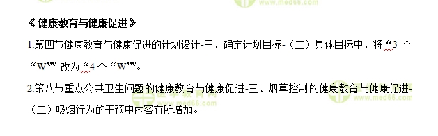 2019公卫执业助理医师应试指南内容变动:健康教育与健康促进相关信息,相信很多人比较感兴趣,下面医学教育网小编将2019年公卫执业助理医师考试教材《健康教育与健康促进》变动内容汇总整理如下,希望对各位备考提供助力。