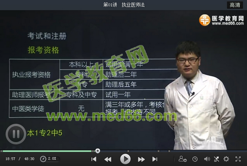 “参加医师资格考试的条件”属于公卫医师考试《卫生法规》中执业医师法的考点,此知识点为此科目中非常重点的内容,对于这个知识点考试大纲要求如下。今天和我一起来看看医学教育网的叶冬老师是怎么讲解这个知识点的。