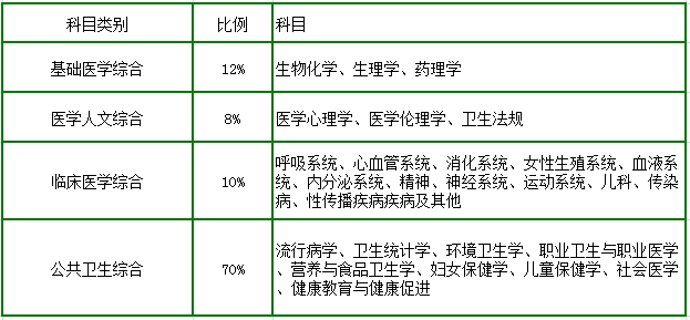 2019年公卫助理医师考试综合笔试各个科目所占比例如下表所示: