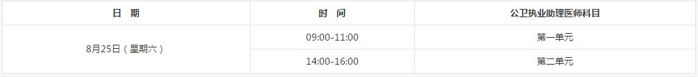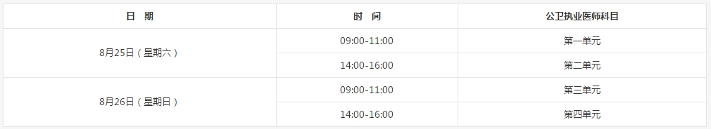 3.2018年公卫执业助理医师医学综合笔试全国统一考试时间为8月25日:
