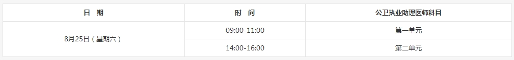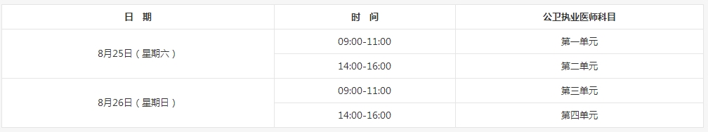 三、2018年公卫执业助理医师医学综合笔试全国统一考试时间为8月25日: