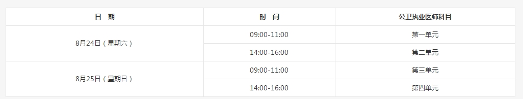 二、2019年公卫执业医师医学综合笔试全国统一考试时间为8月24日和25日: