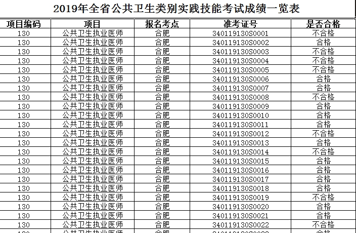 关于“2019年安徽公卫医师实践技能考试考生成绩公示!”,相信很多考生十分关注,下面将成绩单情况整理如下。