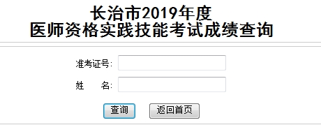 2019年山西长治市医师资格实践技能考试成绩查询入口地址:http://www.czhosp.cn/exam/yszg/search.html?from=groupmessage&isappinstalled=0