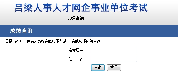 吕梁市20119年医师资格实践技能考试成绩查询入口:http://www.llrc.com.cn/chengji02/