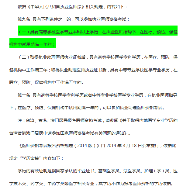 2.2009年12月31日以前入学、符合本款规定的医学专业本科学历加注医学专业方向的,应以学历专业报考;2010年1月1日以后入学的,医学专业本科学历加注医学专业方向的,该学历不作为报考医师资格的学历依据,经国家教育行政部门批准的除外。
