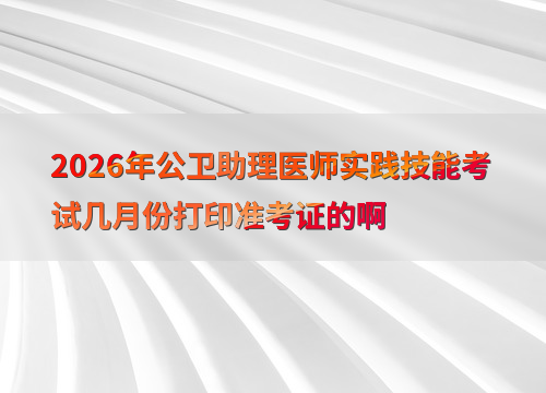 2026年公卫助理医师实践技能考试定于6月6日至7日举行,准考证打印时间因地区而异,通常在考前1-2周开放。