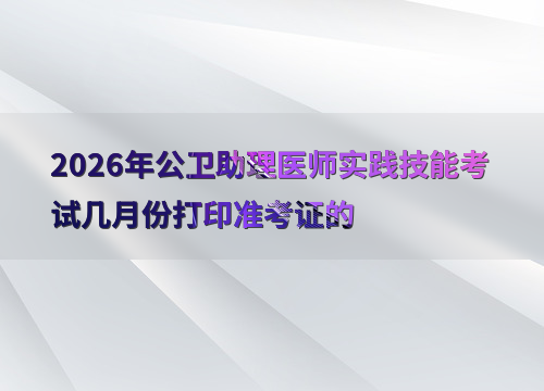 2026年公卫助理医师实践技能考试定于6月6日至7日举行,准考证打印时间因地区而异,通常在考前1-2周开放打印。
