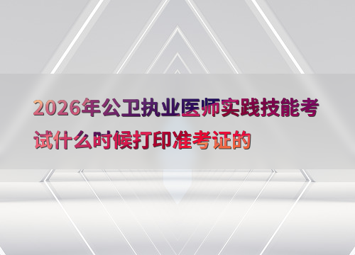 2026年公卫执业医师实践技能考试定于6月6日至7日举行,准考证打印时间因地区而异,通常在考前1-2周开放打印。