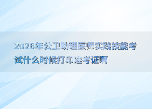 2026年公卫助理医师实践技能考试时间为6月6日-7日,准考证打印时间因地区而异,一般在考前1-2周登录国家医学考试中心官网进行打印。