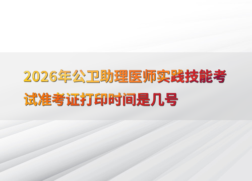 2026年公卫助理医师实践技能考试时间为6月6日至7日,准考证打印时间因地区而异,通常在考前1-2周开放打印。