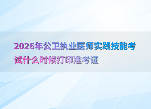 2026年公卫执业医师实践技能考试定于6月6日至7日举行,准考证打印时间因地区而异,通常在考前1-2周开放。