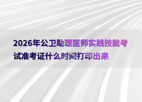 2026年公卫助理医师实践技能考试定于6月6日至7日举行,准考证打印时间因地区而异,通常在考前1-2周开放打印。