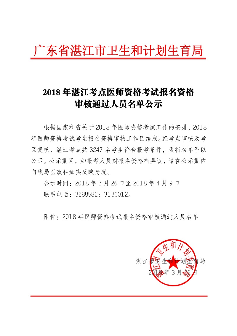 “2018年广东省湛江考点医师资格考试报名资格审核通过人员名单公示”由医学教育网的小编为您整理,希望小编的文章可以对您有帮助。