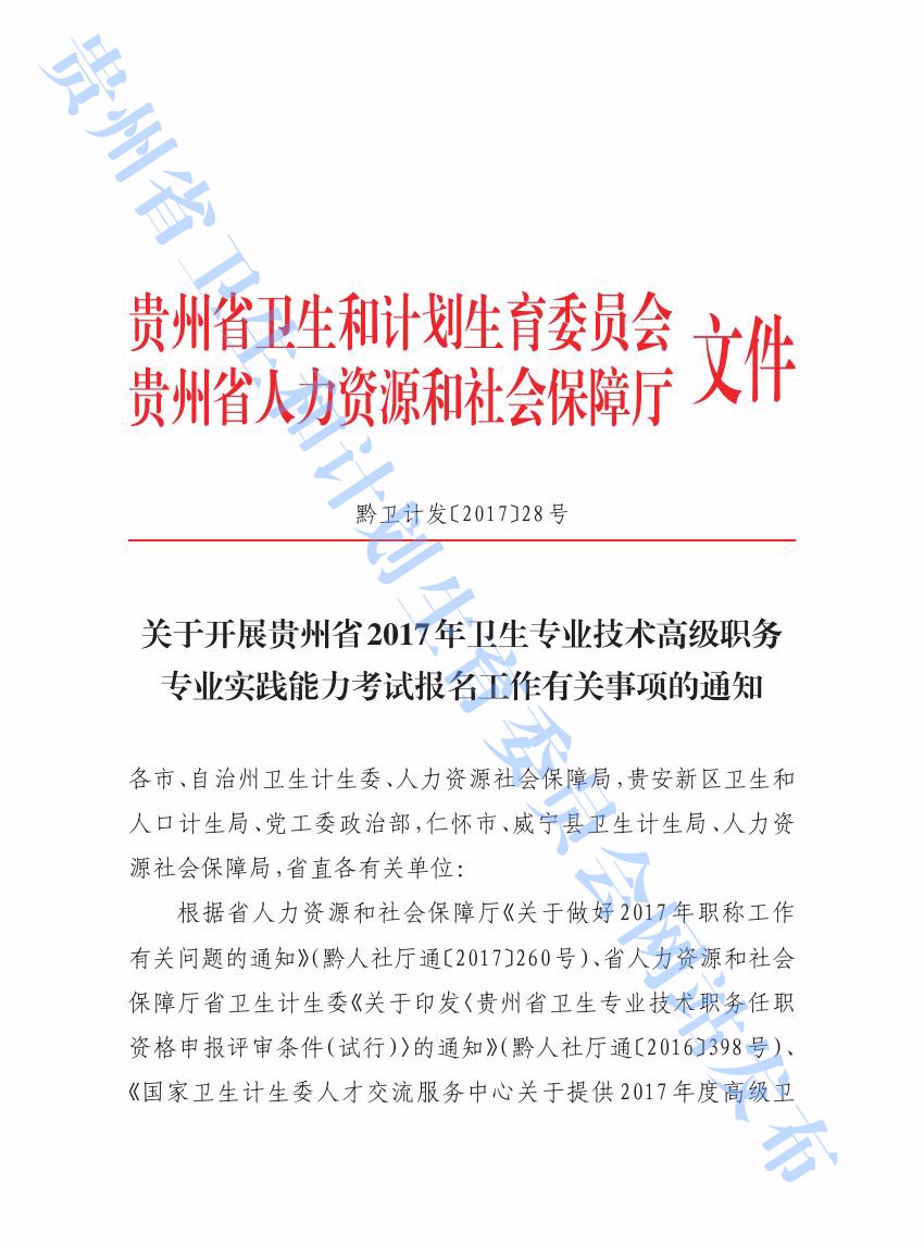 附件下载:《关于开展贵州省2017年卫生专业技术高级职务专业实践能力考试报名工作有关事项的通知》