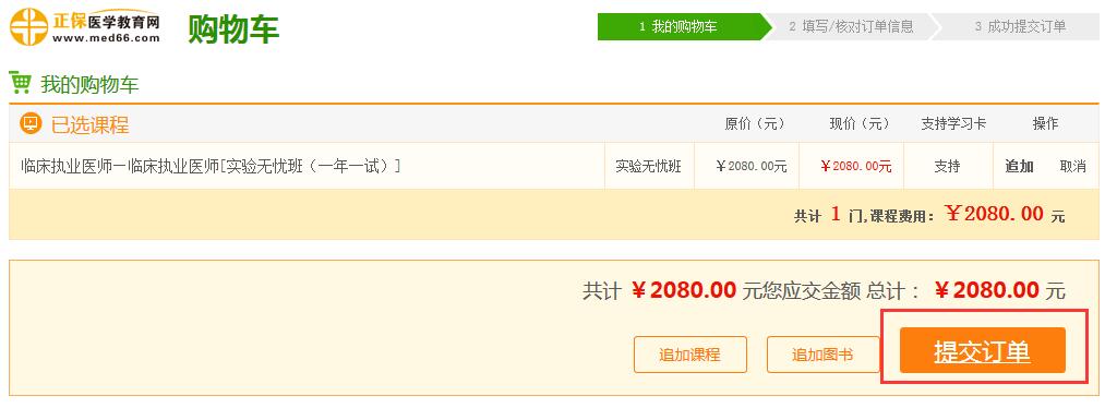 4、确认已选课程及金额,无误后,点击“提交订单”。