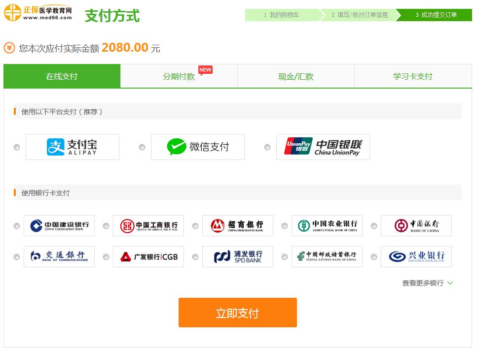 6、确认支付金额后,选择支付方式后,点击“立即支付”即可。
