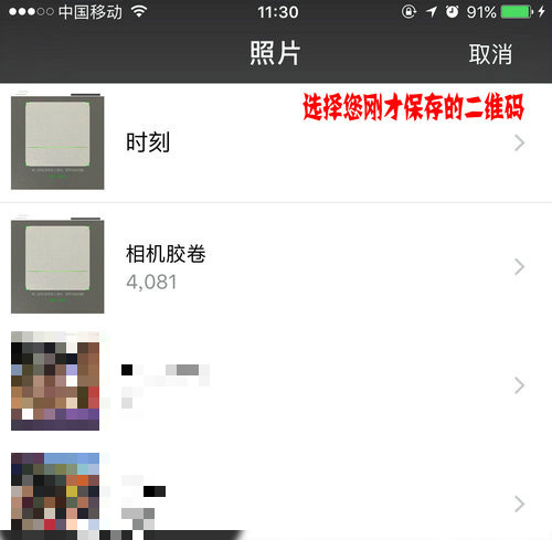 如何从相册中识别二维码关注?