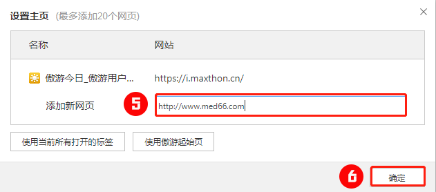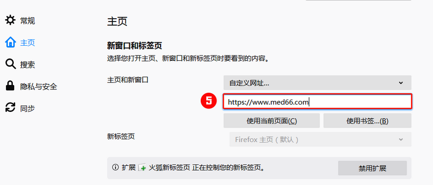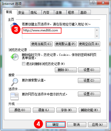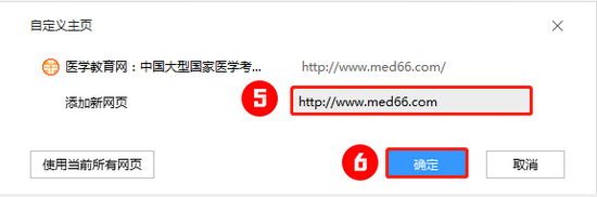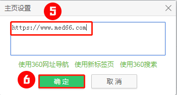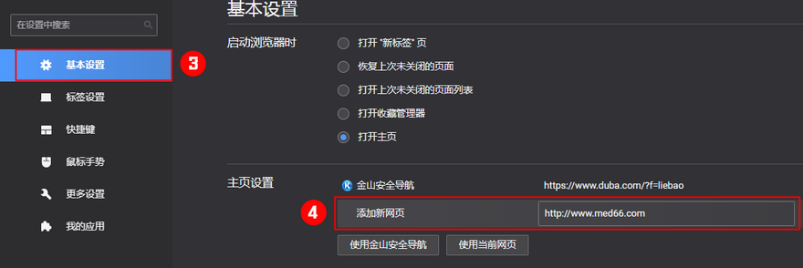 第二步:基本设置-主页设增加新网页,输入http://www.med66.com即可。