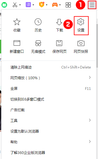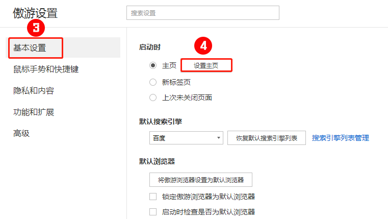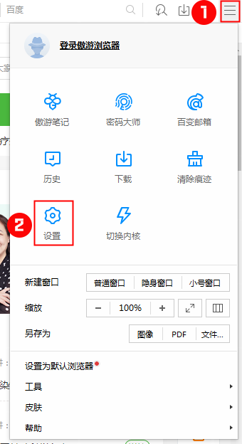 第一步:打开傲游浏览器-右上角列表按钮-设置,如图所示: