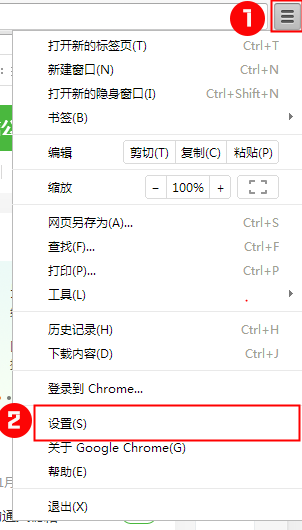 第一步:打开谷歌浏览器-点右上角列表按钮-设置,如图所示: