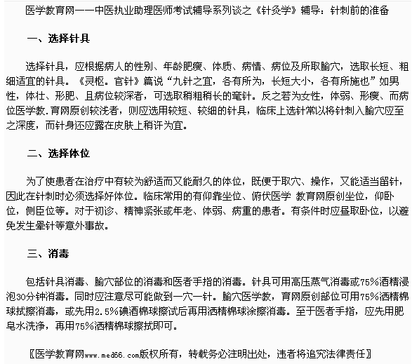 中医执业助理医师《针灸学》辅导:针刺前的准备