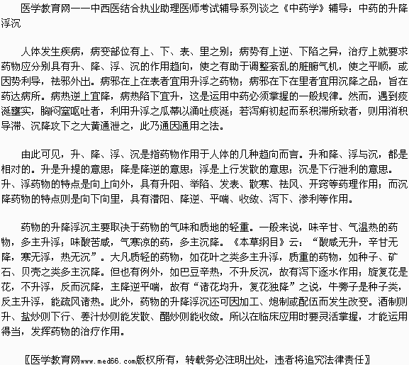 中西医结合助理医师《中药学》辅导:中药的升降浮沉