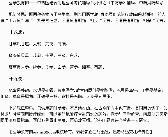 中西医结合助理医师《中药学》辅导:中药用药禁忌