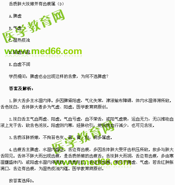 医学教育网——中医执业助理医师考试辅导系列谈之《中医诊断学》辅导:胖大淡嫩舌