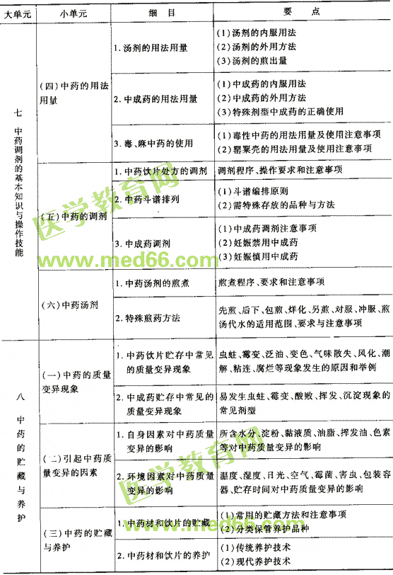 2007年执业药师考试大纲——中药综合知识与技能(三)