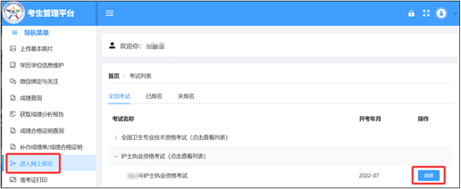 1.点击【进入网上报名】,选择“2026年护士执业资格考试”。