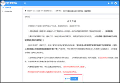 3.认真阅读《重要声明》和《考生诚信考试承诺书》,确保充分知晓考试相关规定和要求,勾选“我同意并确认”后点“下一步”,进入报名信息填写页面。