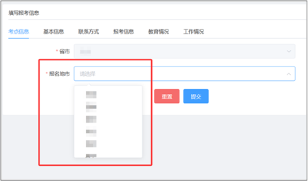 如信息填写后发现省份选择有误,请在“未提交报名信息”状态下,使用【修改考区】功能进行修改。