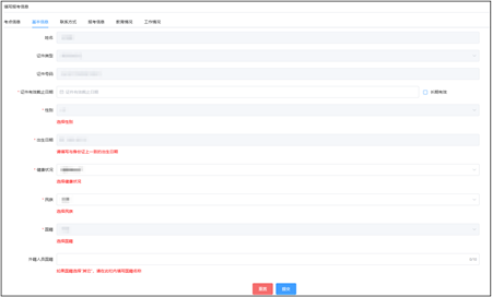 (2)基本信息会根据考生注册时填写的内容自动引用,如未引用性别、出生日期,考生可手动选择,民族和健康状态诸根据实际情况下拉选择。