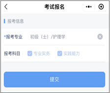 (4)“报考专业”选择“初级(士)/护理学,“报考科目”默认勾选所有科目不能修改。