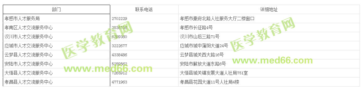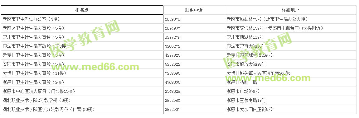 附件1:护士执业资格考试报名孝感考点各报名点联系方式