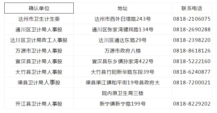 3.达州职业技术学院、达州中医校:负责本校2019年应届毕业生审核确认。现场确认时间由学校自行确定。