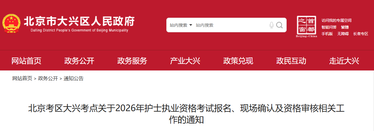 为做好2026年度护士执业资格考试报名工作,现将北京考区大兴考点具体工作安排通知如下: