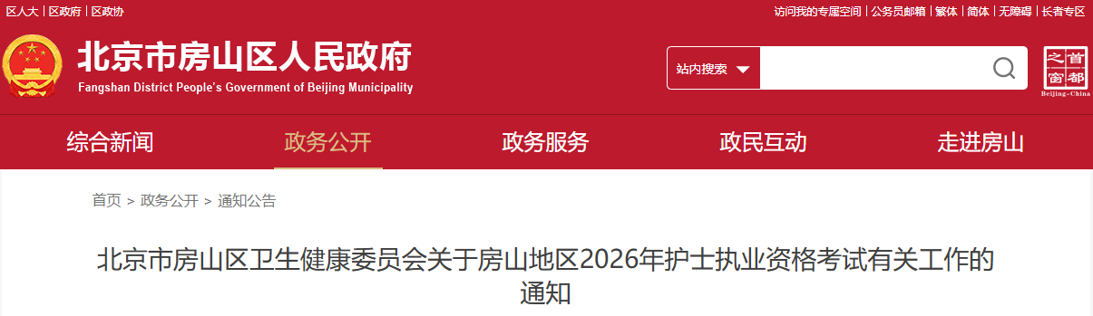 根据《北京市卫生健康委员会关于北京地区2026年护士执业资格考试有关工作的通知》(京卫干人〔2025〕154号)文件精神,现将北京考区房山考点2026年护士执业资格考试有关工作通知如下: