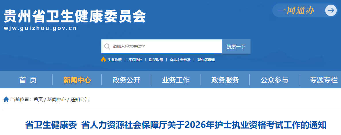 根据《全国护士执业资格考试委员会办公室关于2026年护士执业资格考试有关问题的通知(护考办发〔2025〕4号)《国家卫生健康委人才交流服务中心关于2026年护士执业资格考试考务工作安排的通知》(卫人才发〔2025〕75号)精神,2026年护士执业资格考试定于2026年4月11、12日举行。为做好我省护士执业资格考试工作,现就有关事项通知如下: